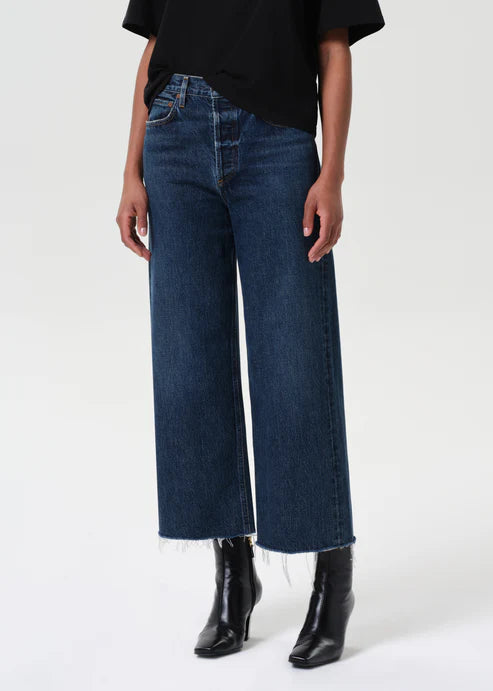 AGOLDE’s Ren Jean features a dark tinted indigo in a classic wide-leg silhouette. Made from 100% weightless, non-stretch denim with a super soft hand, these high-rise jeans offer a relaxed yet flattering fit with subtle fading, marbling, and whiskering details. Pair with a simple tee or structured jacket for effortless style.