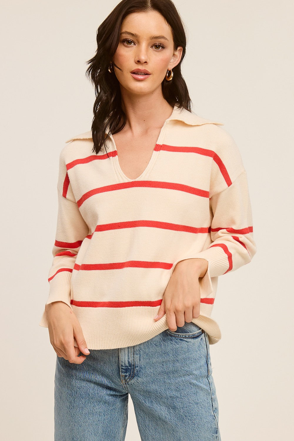 Collared Knit Top - Red Stripe